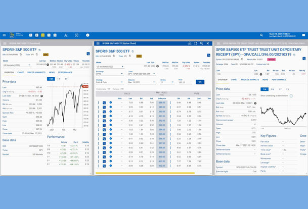 This view could be helpful for an options trader interested in SPY calls. Here you’ll find a Factsheet to review historical performance and any related news, an options chain and a quote on an individual option. Find out more about options in the Options Trading Guide.